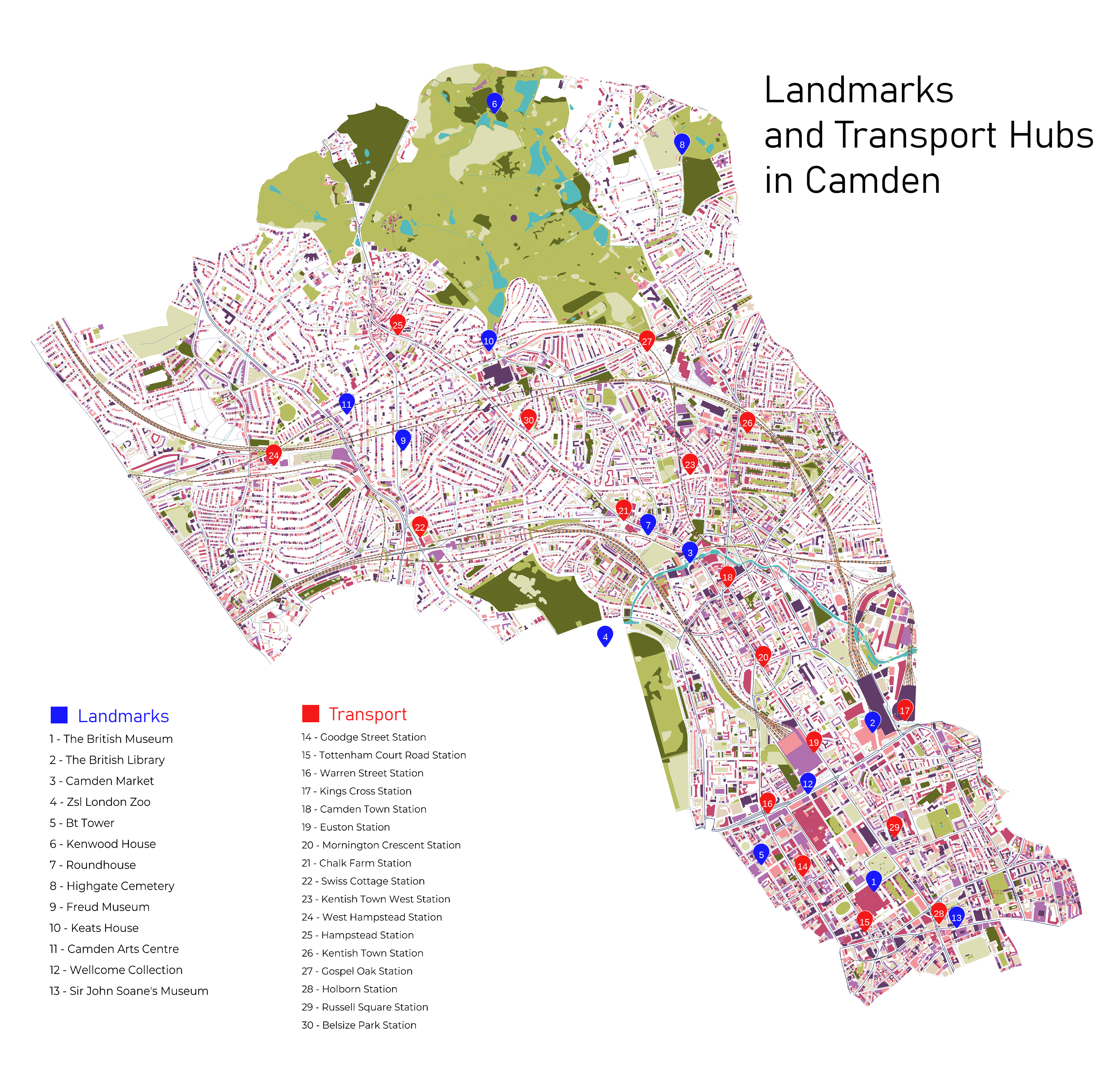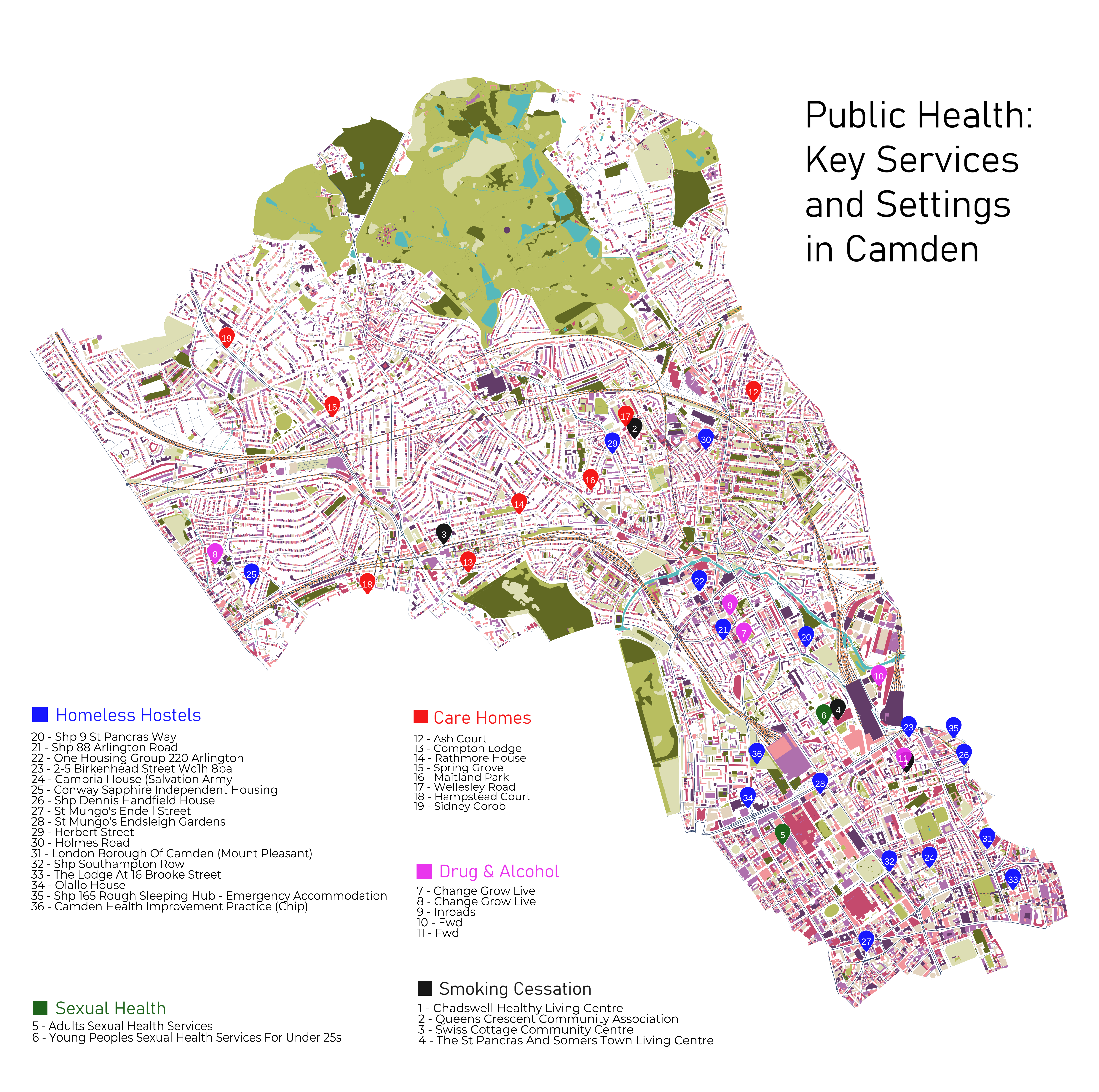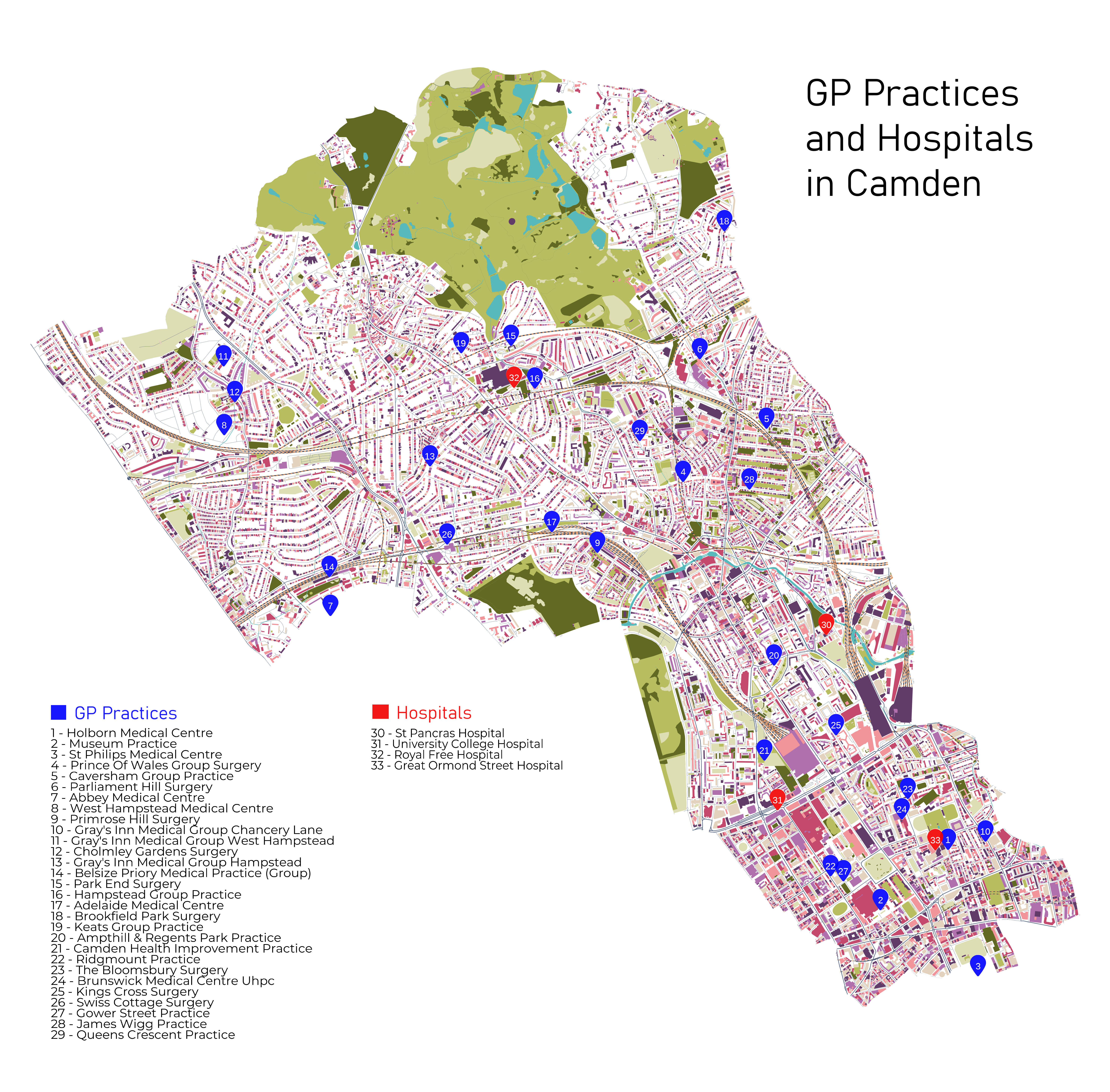 High resolution maps of Camden and its hospitals, GP practices, schools, services, landmarks, and more are found here. All images are free to use and disseminate.